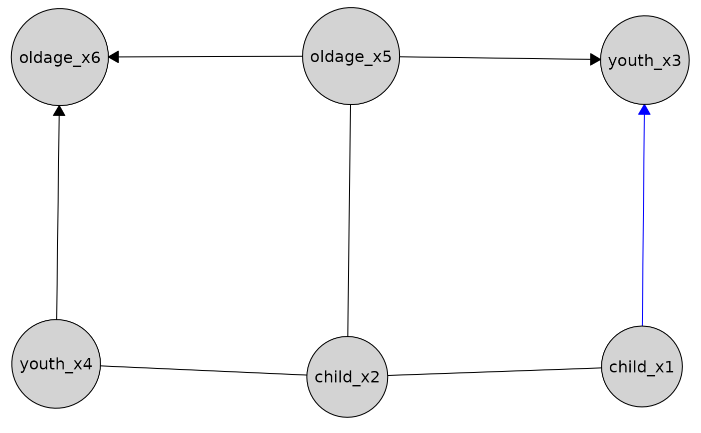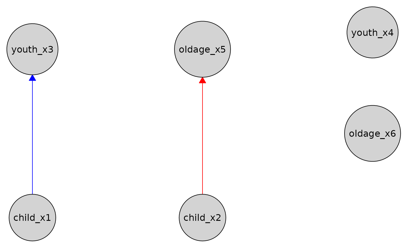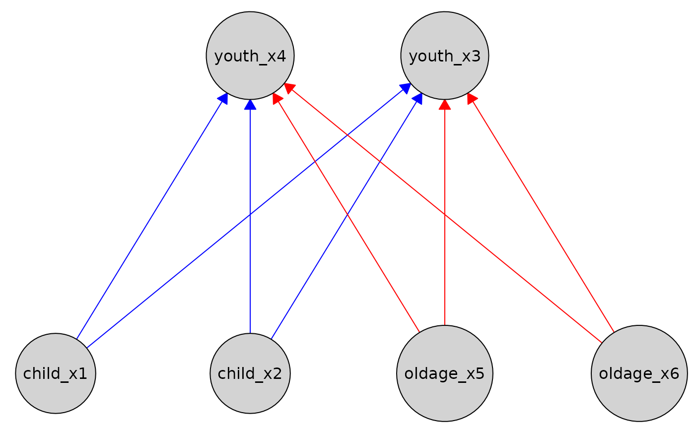 )This means, that all variables starting with “child” are required to have edges to all variables starting with “youth”, and no variables starting with “oldage” can have edges to any variables starting with “youth”. We can visualize this: